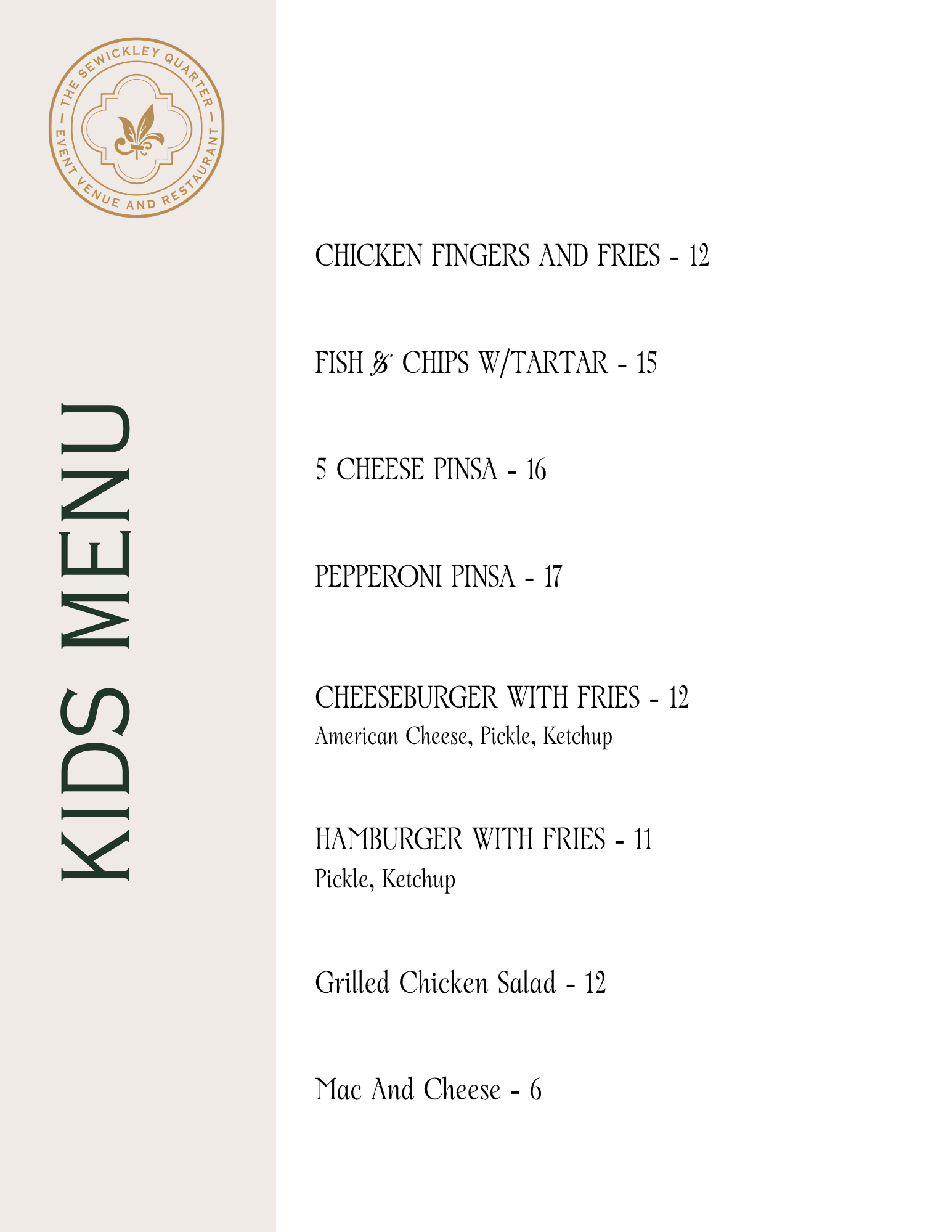 New Summer Kids Menu
